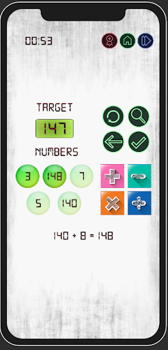 You gain points according to the closeness of your result to the target number. Do not forget! You have a certain amount of time for the calculations. Math is fun. Let's Math.