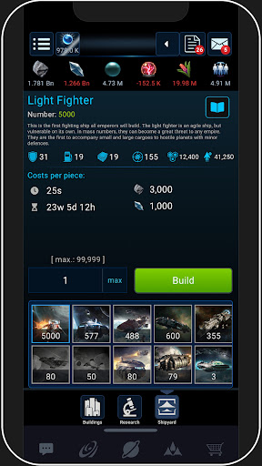 With the valuable resources you exploit on your planet, you can build a formidable war machine, and gain an advantage by researching new technologies. Expand your empire by colonising new planets, making strategic alliances, and picking battles wisely against other players. As a space pioneer, you'll face challenges but also gain power and glory in the depths of the cosmos.