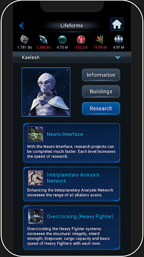 Choose a gaming style that suits your preferences from three unique classes, each having a distinct focus- resource production, combat, or research. Additionally, you can select one of four different lifeforms- humans, Kaelesh, Rock'tal, and Mechas- each with its own set of skills and expertise.