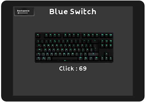 Relaxing mechanical keyboard sounds and a keystroke counter.
