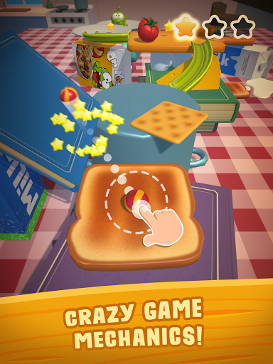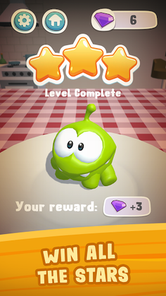 Bounce of walls, Overcome gravity and use momentum in order to achieve your 3 goals, get the stars, feed Om Nom and have endless fun!