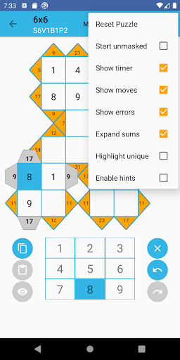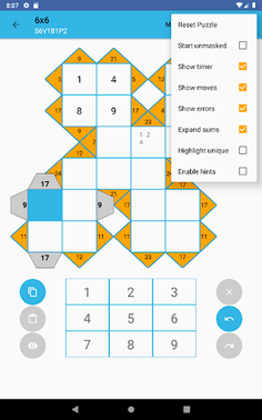 The object is to fill in the rows and columns with digits 1 to 9 (no duplicates) so that their sum matches the clues.