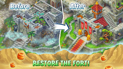Roofs, towers, stairs – the to-do list is long! Earn precious pearls while blasting through thousands of match-3 levels. Use them to pick out chandeliers and cannons as well as decide what style of gallows you prefer on your pirate paradise island. Unlock the hidden parts of the island, expand the fort, restore the parks and gardens and turn this pirate destination into the envy of the Caribbean!