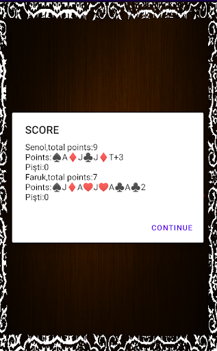 Only the value of a card matters. Example: 2 trumps 2, 9 trumps 9, etc. A jack (J) always trumps. A special trick is the "PISTI": If the table contains only one card and the card played leads to a trick, then this trick is worth 10 points. How the points are counted and how the game is played is described in the help (?).