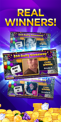 Fun, free slots and bingo, exciting tournaments, with the added excitement of Sweepstakes Cash Prizes. Play everyday to earn entries into our Daily Cash Sweepstake drawing and our Grand Prize drawings!