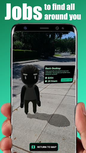 Use the map to find customers around you, but don't leave them hanging or you'll pay to keep them as satisfied customers! Use AR to interact with customers and accept their dire jobs they have for you for a reward!