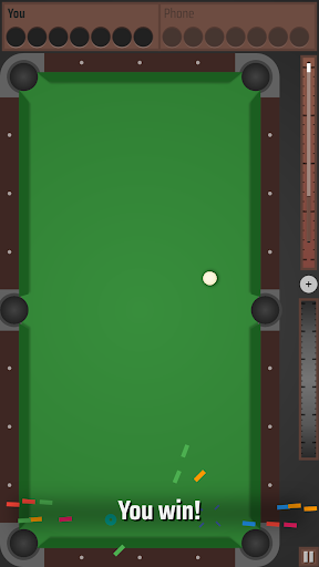 - "Play vs. Phone": Challenge your mind by playing against your own phone or tablet! Will you be able to beat the AI (Artificial Intelligence)? This is an ideal mode to practice your pool skills.