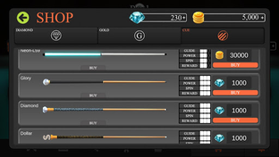 - You can change the different shapes of cue sticks or increase the ability of the them.