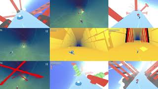 Embark on several thrilling adventures, including Machine, where you race after a crazed machine deep underground, ride across floors, walls, and ceilings while dodging lasers and spiky obstacles. Air lets you soar among the clouds as you take on the wildly spinning machinery. In Pyramid, lasers, jump ramps, and moving walls stand between you and claiming your ancient tomb prize. In Dive, you spiral out of control in an underwater tunnel full of rotating hazards. Try to avoid spiky, rotating and moving objects in Metro as you zigzag through a super-fast city track. Hit tiny gaps and avoid spike-balls and lasers in Halfpipe while riding on the halfpipe. Or enter into the endless and eternal darkness of Tunnel where slow-motion collectables make your ride easier or not. Be careful though; in Futurism, breakable walls and boxes are waiting for you, and in Wasteland, an abandoned, and broken passage will be an obstacle in your way.