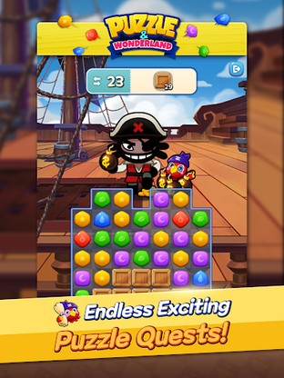 Get ready to explore different dimensions, stop Dong King's evil plans and enjoy the core main mode - Adventure Mode with Pucca! Plus, indulge in over 100 stages of classic match 3 puzzles starring the captain of the flying pirate ship in the "Match and Solve Puzzle Quest." Moreover, participate in the Breakthrough Mode to raid against vicious bosses, or test your limits in Challenge Mode. Don't forget to develop and decorate your village by collecting Village Coins and earning rewards after clearing Adventure Mode.