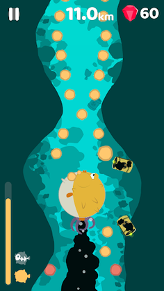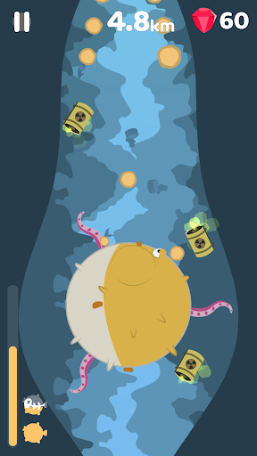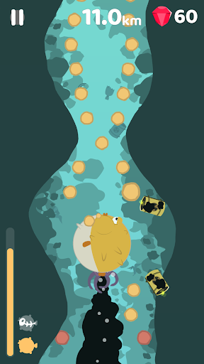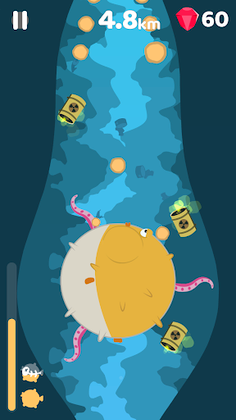 Get into the water with a pufferfish and try to reach as deep as possible in an ocean polluted with trash and waste!