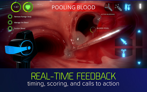 In Pulm Ex, you will get the chance to perform interventional bronchoscopies on ultra-realistic simulations of the trachea and bronchi. Test your skills with challenging patient scenarios and remove foreign objects such as nails, pen caps, cotton swabs, and tiny toys. Diagnose and treat virtual patients with procedurally designed cases, and replay them to perfect your technique. Real-time feedback is given with interactive patient cases where you will receive scores based on your skill, speed, and ability to maintain patient vitals and health.