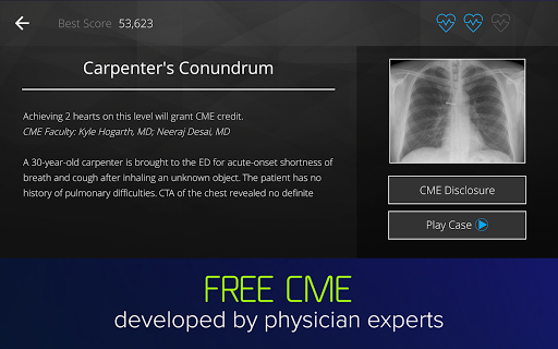 Successfully completing selected cases will earn you CME credits, and gain knowledge about new medical devices and drug therapies within the app. Hone your medical decision-making and inductive reasoning with diagnosis-based gameplay.