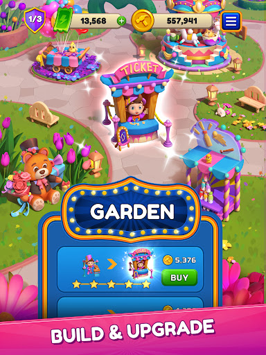Ignite your imagination as you design and build the most incredible theme park on the planet. Engage in captivating Match 3 levels to craft exciting attractions like Roller Coasters, Ferris Wheels, and Log Flume Rides.