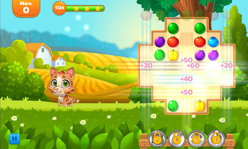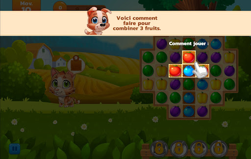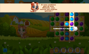 To remove them from the board, you must match three or more fruits or vegetables of the same kind. Continue mixing and matching fruits and vegetables until your animals are completely saturated. If you don't finish the level before you run out of moves, you'll have to start over!