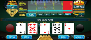 Видеопокер с таблицей выплат как в казино, реальной раздачей карт, автоматическим удержанием карт и БЕСПЛАТНЫМИ кредитами