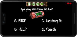 - Kamu punya waktu 5-15 detik untuk menghentikan atau melewati soal bom, kalau tidak bom akan meledak dan Game Over!