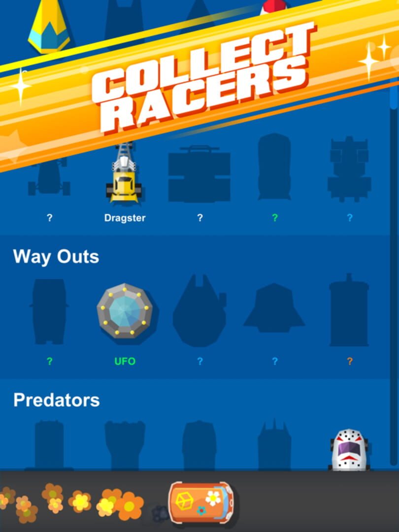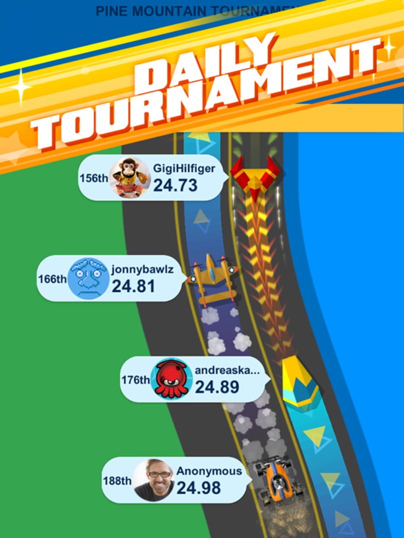 Collect cool racers and race against friends worldwide in daily tournaments in this simple yet challenging one-touch racing game.