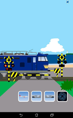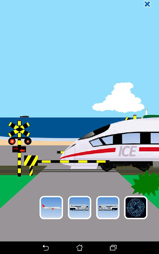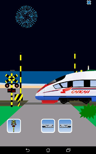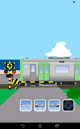 The five buttons displayed on the screen (the crossing button, the airplane button, the right-going bus button, the left-going bus button and the fireworks button) will trigger their respective actions.