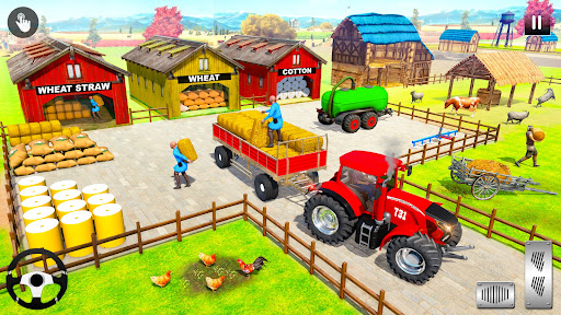 Real tractor Farming - Tractor Driving Sim 2021 allows you to deal with realistic farming job in extraordinary off-road tractor drive simulator 2021. Plant, grow, harvest, and sell two different crops: Wheat & Corn, bring up cows and sheep, and transport animals at your Tractor Trolley Driving Simulator 3d farming game 2021. Enjoy new Cargo tractor trolley simulator game to expand your farm land. Take direct control of real 4x4 chained tractor simulator to help and manage your farming and cargo transport and in growing crops in Modern farming simulation game.
