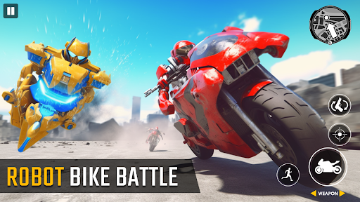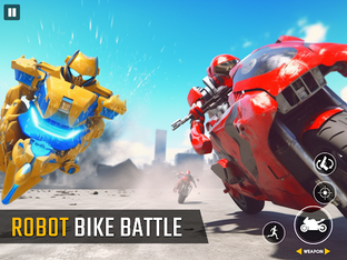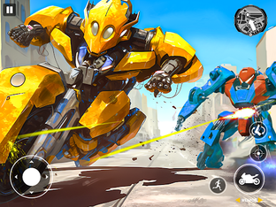 Play the Grand flying robot bike transform racing game warrior now, transform into a moto bike and keep on upgrading your powers to challenge big bosses in this robot transforming shooting game. The flying real police moto bike robot shooting game has crazy robotic gameplay. You will definitely enjoy this interesting thrill of transformation and robot war-fighting car games.