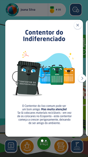 Além desta missão principal o Recycle BinGo vai lançar-te missões especiais. Desafios divertidos que vão pôr à prova o teu bichinho pela reciclagem. E, claro, recompensar-te com mais EcoMoedas que podes trocar por ótimos prémios.