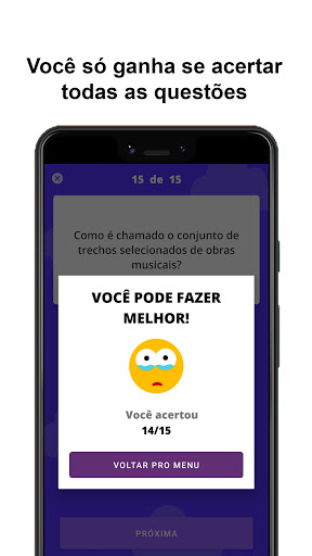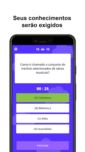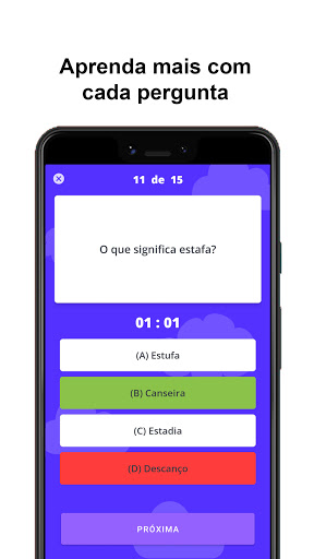 Você vai responder quinze questões no tempo máximo de três minutos, após o término desse período, ou das questões, você receberá o resultado final.