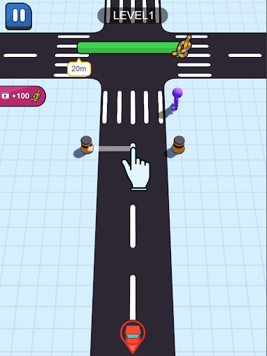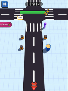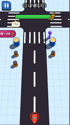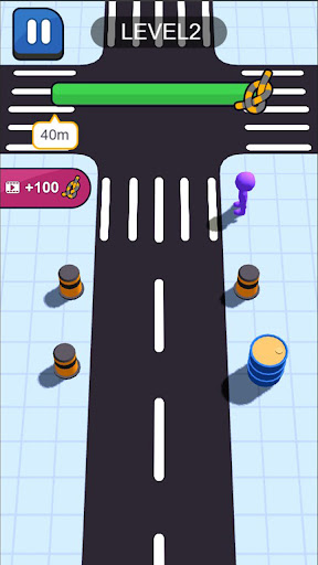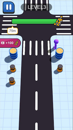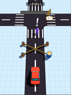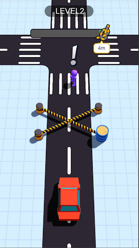 Vehicles will rush out from different intersections. Because the inertial vehicles will rush out for a certain distance uncontrollably, you need to ensure that the ropes are not broken and save the people walking on the zebra crossing.
