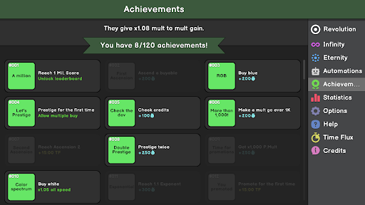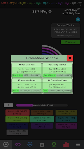 ⦿ Multipliers and Prestige: Boost multipliers and unlock prestige for additional multipliers and exponent growth.