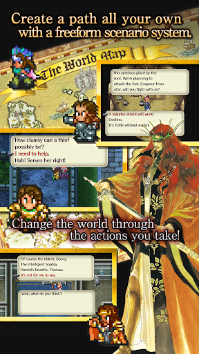 Romancing SaGa 2 also includes new features such as new dungeons, classes (ninja and diviner), new game+, autosave, and touch-oriented UI for mobiles. The game is best enjoyed on Android 4.2.2 or above, although not all devices are compatible. Discover the kingdom's captivating and diverse history while experiencing the individual story's open-endedness. The story's personal and unique portrayal in Romancing SaGa 2 will make your adventure unforgettable.
