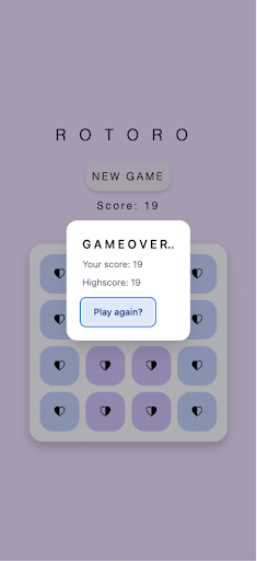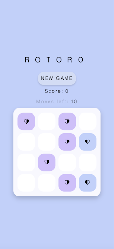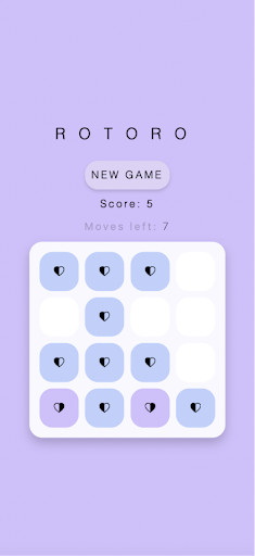 Rotoro is a bright, colorful puzzle game which requires rotating the board as strategy to reach the highest score.