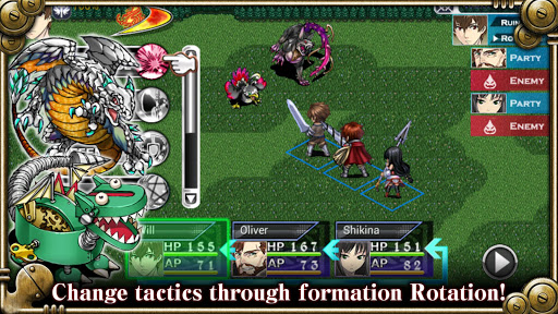 When selecting actions, the order of the following turns is displayed on the right of the screen, so it is possible to change enemies' positions appropriately. For example, when an enemy is going to attack, you can bring a character with high defensive strength to the vanguard, and conversely, you can move a character with low defensive strength to the rearguard.
