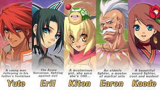 Yute, a young man who has inherited his father’s enthusiasm and strong will, Eril, a young woman who hopes to protect the things that are dear to her, Kiton, a young girl who wants to find out her true identity, Earon, an old teacher who wants to correct the path one of his former pupils has chosen to follow, and Kaede, a woman who follows Earon now...