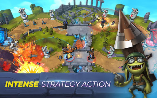 • Lead your armies to glory: summon Heroes, use skills and abilities, push the lanes, and destroy the Runegates!