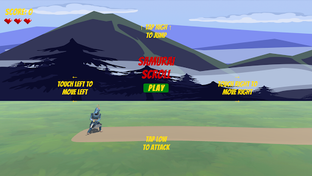 A side scrolling fighting game. Touch left/right to move left/right. Tap low to attack. Tap high to jump.