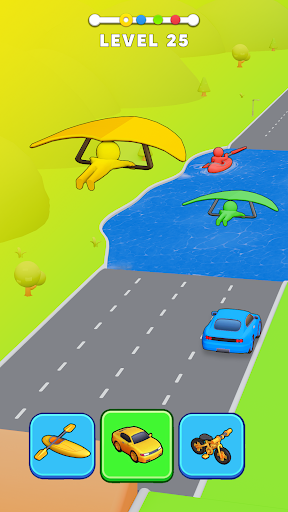Your agility is tested as you switch shapes to navigate through a variety of obstacles. Miss a beat, and you start over. It's not just about speed; it's about smart, timely transformations. Transform Your Fun and join the Vehicle Switch Race!