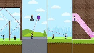You have to aim with the gun you have and kill the bad guys. Be careful, the bullets will ricochet if they hit the wall.