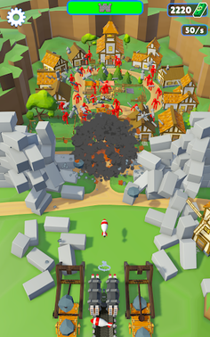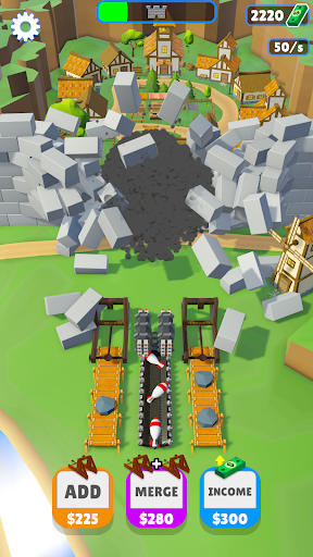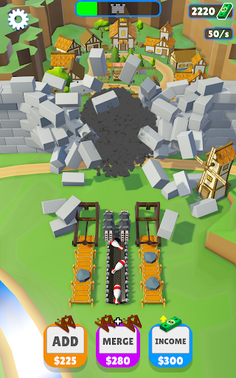 Buy and merge the catapult to make them turn into canons to missile launchers.