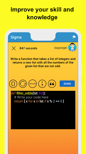 Sigma is the first app enabling users to compete against each other in coding challenges in real-time.