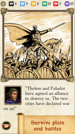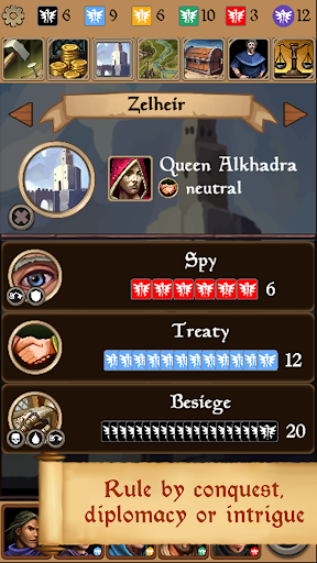 Lead the fallen city of Thylla by taking charge and reviving the lost power of your realm through subduing other monarchs across the valley. Take advantage of your advisors and select them wisely for warfare or diplomatic purposes. You will need to establish trade, explore your surroundings, spy on your enemies, and even plot against other rulers to succeed in this game. Brace yourself for a complex and unrelenting universe where you can lose your crown in any possible way, yet always with good motive.