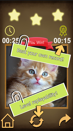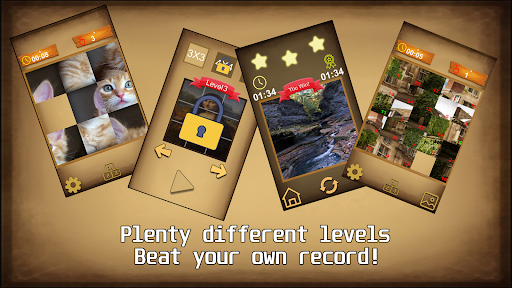 ability and agility. All you have to do is slide the blocks untill you complete the image, once you do that the full image will show and you will get 1-3 stars and the time it took you to complete the level. Slidey Puzzle has replayability scince you will have a time record on each level so you will be able to repeat the same level! ¿Do you think you will be able to complete it faster?