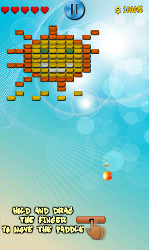 Control the paddle by tapping or dragging your finger on screen. The goal is to clean the level of all the bricks on top. To do that you have to bounce the ball off the paddle and walls and try to keep the ball onscreen. If it falls, it doesn't matter - you have plenty of lives.