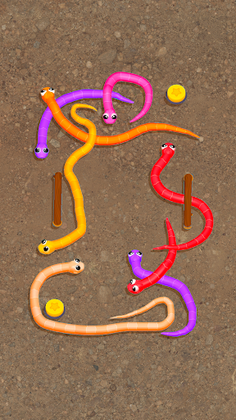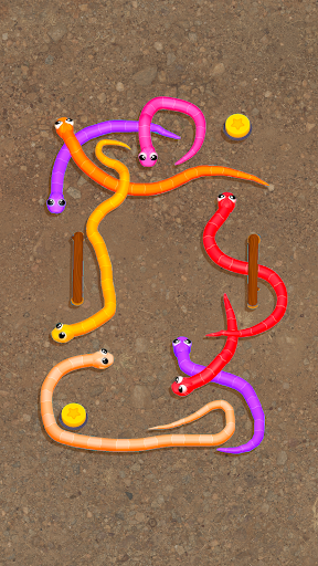 Our sorting game will tangle you up with its gripping “good sort” levels! Unlike in any color sorting and knot-tying game, the main challenge here is to decipher and untangle every snake’s mysterious course. 🐍 In Snake Knot: Sort Puzzle Game, the tangled snakes slither around, block paths, and coil themselves up in knot-tying ways, looking like a worm cluster. Get the snakes sorted and untie every twisted tangle by guiding them one by one. Play your moves right and untangle all the to beat this sorting game! 🌟