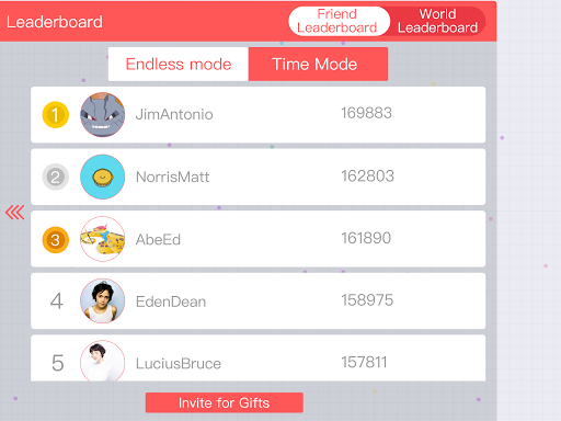 1. Choose between "Five Minute Mode" or "Endless Mode" and compete with friends.