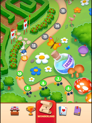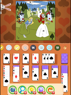 1. Play classic Klondike solitaire with beautiful, colorful graphics and illustrations inspired by the famous classical adventure fantasy Alice in Wonderland.