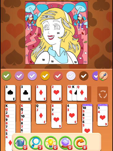Are you ready to embark on a magical journey through Wonderland while improving your brain power and creating one-of-a-kind art pieces? Then try Solitaire Coloring Wonderland today! Don't miss out on this unique and fun gaming experience – download Solitaire Coloring Wonderland now and out your inner artist.