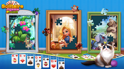 Solitaire Jigsaw Puzzle is a magical Klondike Solitaire card game, you can play classic solitaire card games to gather jigsaw puzzle pieces, and then use these jigsaw pieces to design your own art gallery!