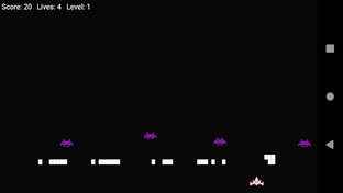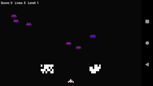 The aliens begin as five rows of eleven that move left and right as a group, shifting downward each time they reach a screen edge. The goal is to eliminate all of the aliens by shooting them. While the player has three lives, the game ends immediately if the invaders reach the bottom of the screen.The aliens attempt to destroy the player's cannon by firing projectiles. The laser cannon is partially protected by stationary defense bunkers which are gradually destroyed from the top by the aliens and, if the player fires when beneath one, the bottom.