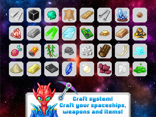 To spice it up, there are 8 weapons with varying attributes and 14 different combat skills to discover. Encounter over 40 aliens with unique abilities and visit 7 characters with their stores and missions. There are 39 materials available to craft items and players can manage hunter robots for extra income. Visit your friends' ships and enjoy playing as much as you want since Space Life allows cloud save.