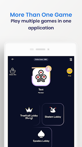 With the app's customizable user features, you can establish your own set of rules for each room, including time limits, round counts, and chat settings. You can also partake in three different games: Court Piece (also known as Hokm or Troefcall), Shelem, and Spades. To further enhance your experience, the app offers a variety of additional features, such as a friends list, the ability to invite others to your room, and private chat options for other players. You can also view the list of rooms that your friends are playing in, as well as access a roster of all online users.